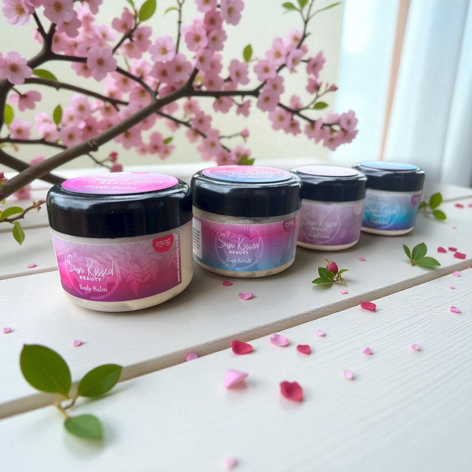 Sunkissed Beauty brings you our brand new products, Try our new custom range, Our Body Balm, Foot Scrub, Face Cream, Foot Balm, Face wash and Eye Serum will make your skin feel soft and moisturised